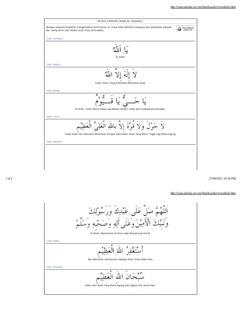 If playback doesn't begin shortly, try restarting your device. Bidayatul hidayah imam al ghazali. Zikir hari selasa imam ghazali. Artinya, "aku memohon ampun kepada allah yang maha agung, yang tiada tuhan selain allah, dia yang maha hidup dan yang berdiri sendiri, aku . Zikir juwairiyah (isteri nabi saw). Dengan nama allah yang tidak mudarat dengan berkat menyebut namanya apa pun.